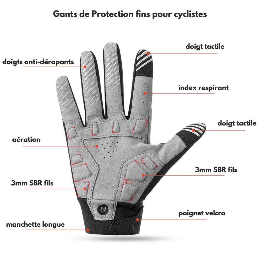 Gants Vélo Cycliste BROC - Coupe-Vent - Doigt Tactile - Noir/Gris